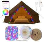 De ingebouwde haak maakt het eenvoudig om de lichtslinger stevig te bevestigen aan tenten, bomen, palen of pergola’s. Hierdoor creëer je binnen enkele minuten een sfeervolle setting.