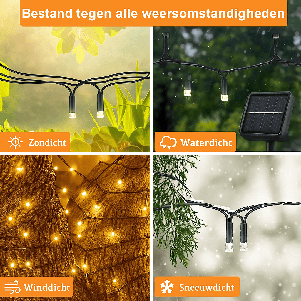 De Best Active Solar lichtslingers zijn eenvoudig te plaatsen zonder gedoe met verlengsnoeren of netstroom. Met een lengte van 12 meter (inclusief 2 meter kabel) of 22 meter en een lampafstand van 10 cm, kun je de tuinverlichting creatief om bomen, hekken, pergola’s of langs paden draperen.